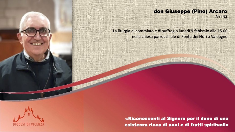 La liturgia di commiato e di suffragio sarà lunedì 9 febbraio alle 15.00 nella chiesa parrocchiale di Ponte dei Nori a Valdagno