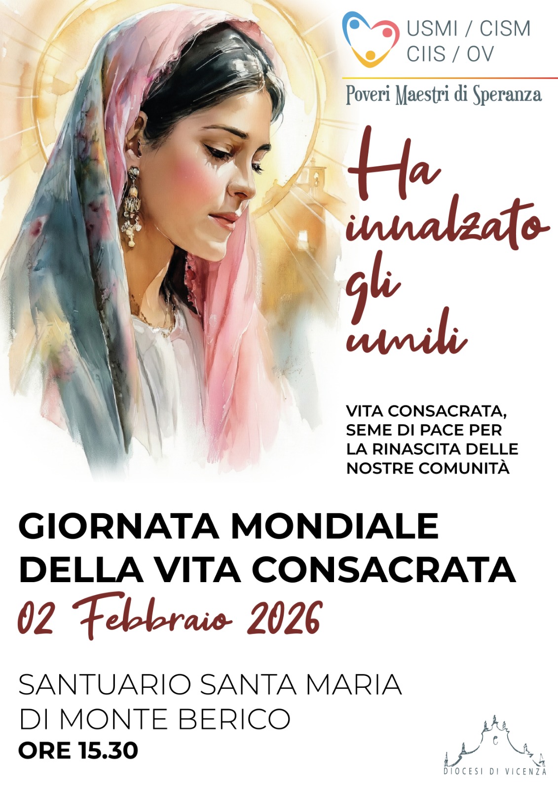 L’intenso e bellissimo programma di iniziative per questa ricorrenza giubilare, sarebbe ancora insufficiente se noi consacrati e consacrate quest’anno non alimentassimo il fuoco della Vocazione, la nostra, ma anche quella dei giovani in cerca di senso nella vita. Per questo i consigli USMI e CISM propongono, a partire dall’ 8 febbraio 2026, la valorizzazione della preghiera del Rosario nelle comunità. La tradizione cristiana ce l’ha presentata più volte anche come strumento infallibile nelle lotte della vita. “Ha rovesciato i potenti dai troni, ha innalzato gli umili”, canta Maria nel Magnificat. Al termine della celebrazione a Monte Berico, sarà consegnato un calendario che unirà idealmente tutte le comunità religiose della diocesi, fino a febbraio 2027, quando celebreremo il giubileo mariano diocesano della vita consacrata.