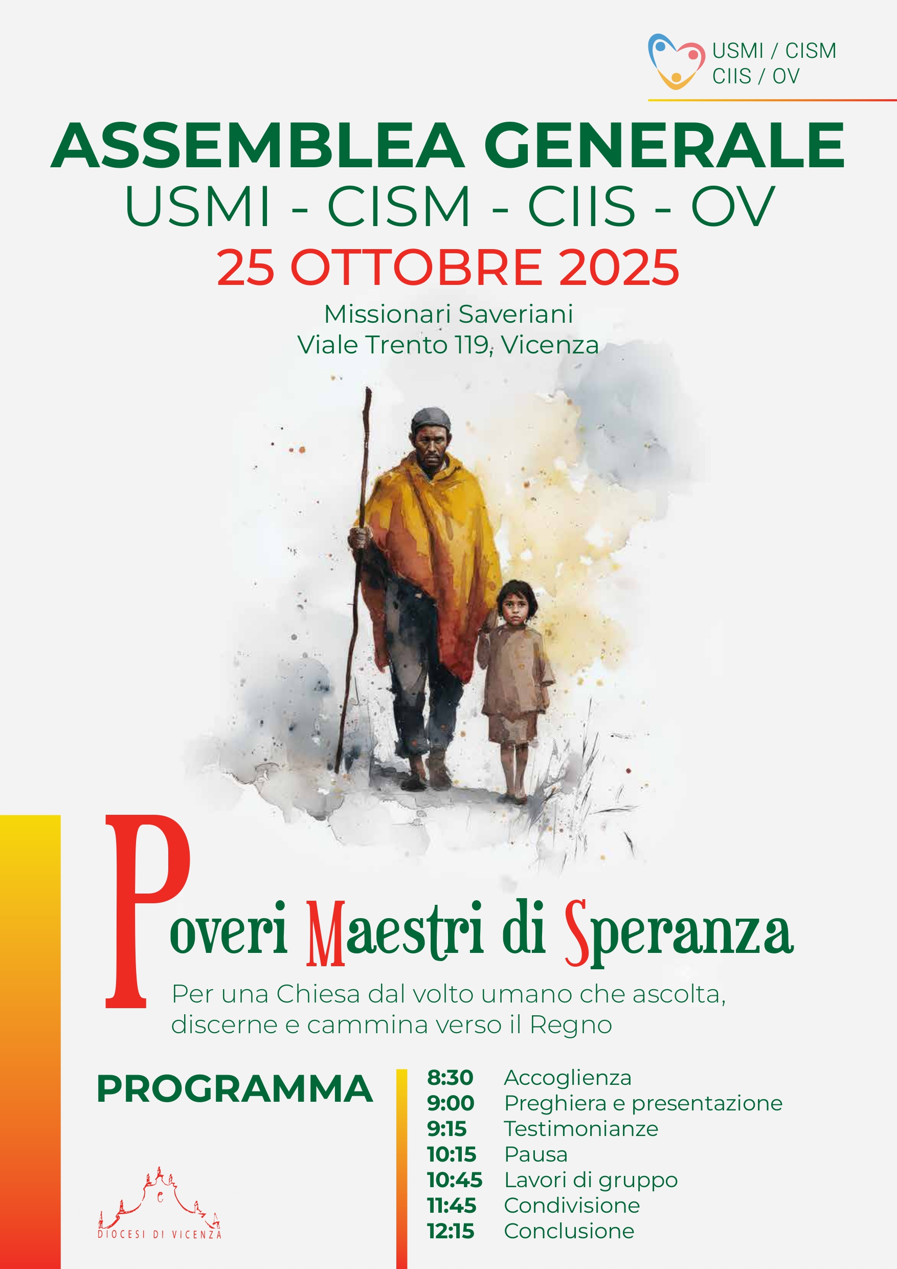 Vi invitiamo a mettere in agenda il primo appuntamento di quest’anno: l’Assemblea Generale USMI – CISM – CIIS – OV che si terrà sabato 25 ottobre, dalle ore 8.30 alle 12.30 presso i Missionari Saveriani in Viale Trento 119, Vicenza.
