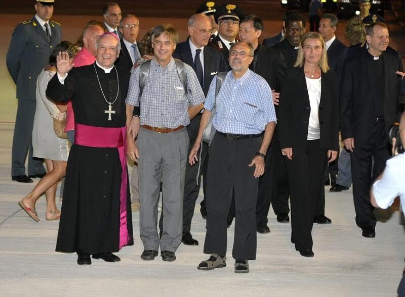 Tutto questo fino a domenica 1 giugno 2014, quando le campane di tutta la diocesi hanno suonato a festa per annunciare il miracolo atteso, la liberazione dei tre missionari. Al vederli al loro arrivo a Ciampino subito ci ha colpito il loro deperimento fisico. Ma poi ascoltando il loro racconto una volta giunti a Vicenza ci hanno sorpreso la loro serenità e la forza interiore che scaturiva dalle loro parole.