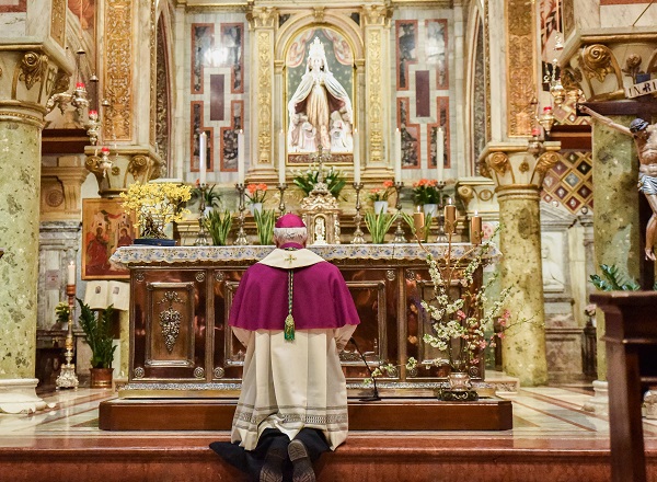 OMELIA DEL VESCOVOCarissimi, con il Vespro di questa sera, siamo entrati nella Solennità dell’Annunciazione del Signore, una festa molto sentita e molto partecipata dai fedeli della nostra Diocesi e del nostro territorio. Quest’anno celebreremo in un modo del tutto nuovo, diverso dagli anni passati. Sarà una festa nelle famiglie e delle famiglie, piccole chiese domestiche, celebreremo in una profonda e intensa comunione spirituale, lontani dalle nostre chiese e dalle nostre comunità. Tutto si è fermato: le attività, l’economia, la vita politica, le scuole, i viaggi, le celebrazioni dei sacramenti, stiamo vivendo una Quaresima universale. Ma fermarsi può voler dire, aver maggior tempo per riflettere, per dialogare, per pregare, per ritrovare il senso della nostra vita. Il salmo (45,11) recita così: “Fermatevi! Sappiate che io sono Dio, eccelso tra le genti, eccelso sulla terra”. Fermiamoci ora, a contemplare insieme con gli occhi e con il cuore questa scena che ci è stata narrata nel Vangelo secondo Giovanni, ricolma di dolore e allo stesso tempo carica di grazia per la Chiesa e per il mondo. Il discepolo amato da Gesù è affidato a Maria come figlio e Maria è affidata al discepolo come madre: ambedue sono consegnati reciprocamente l’uno all’altro. Chiediamoci perché la madre e il discepolo amato stanno presso la croce di Gesù? Perché quando non c’è più nulla da fare, resta solo l’amore, l’unica forza capace di varcare la soglia ultima della solitudine e della morte, perché l’amore è più forte della morte e chi ama è passato dalla morte alla vita. Con l’affidamento del figlio alla madre e della madre al figlio, tutto è stato compiuto.Questa narrazione segna il passaggio dall’ora di Gesù all’ora della comunità dei discepoli di Gesù, la Chiesa. “E da quell’ora il discepolo l’accolse con sé” (Gv 19,17b). Ai piedi della croce si è realizzato il perenne miracolo di amore fra i discepoli e la Vergine Maria, come supremo testamento di Gesù. A Maria, costituita Madre dei credenti tutti gli uomini e le donne ricorreranno sempre a Lei, come a sicuro rifugio.Anche noi tra poco affideremo alla Madonna di Monte Berico tutti gli abitanti del nostro territorio, del nostro paese e dell’intera famiglia umana. Vogliamo porre sotto il suo manto tutte le persone che i nostri più piccoli hanno disegnato con le mani e con il cuore, in questi giorni di dolore e di speranza. E in questo giorno, 24 marzo, anniversario dell’uccisione di san Oscar Romero, arcivescovo di San Salvador, vogliamo ricordare tutti i missionari che sono morti martiri, coraggiosi testimoni del Vangelo di Cristo nel mondo. E rivolgiamo la nostra preghiera alla Madonna di Monte Berico anche per i nostri missionari “fidei donum” in Africa, in Asia e in America Latina, e per i tanti vicentini sparsi nel mondo, che si sentono in comunione spirituale con tutti noi, in questo momento. Tenendo fissa negli occhi e nel cuore la scena di Maria e del discepolo sotto la croce di Gesù, e contemplando l’immagine della Madonna di Monte Berico, riuniti in famiglia, nelle case di riposo e di accoglienza, negli ospedali, nei conventi, nei monasteri, nelle comunità, nelle sedi istituzionali, dopo la recita di un mistero del rosario e il canto delle litanie, pronuncerò a nome di tutti e tutte voi l’atto di affidamento alla Madonna di Monte Berico.
