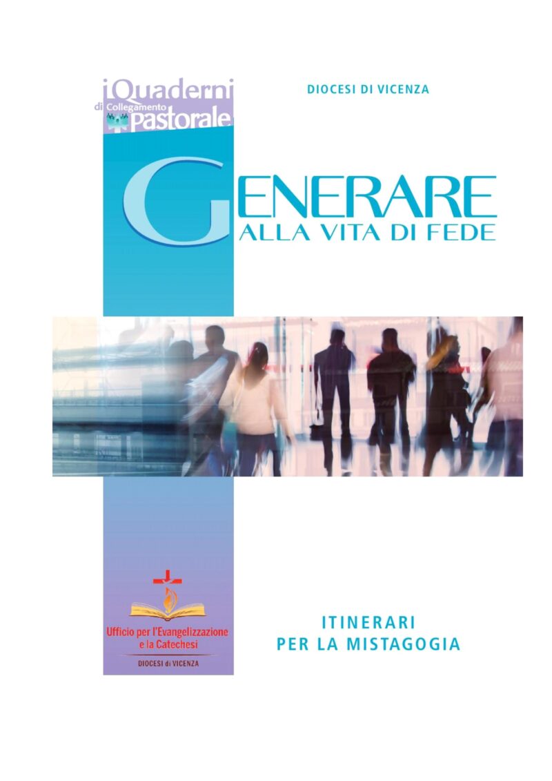 1) “Generare alla vita di fede” – L’ispirazione catecumenale della catechesi – Introduzione 2) Catechisti, educatori e accompagnatori degli adulti 3) Lo stile del laboratorio 4) Itinerari genitori e adulti 5) Itinerari Battesimo 0-6 anni 6) Itinerari Prima Evangelizzazione 7) Itinerari Catechesi e Sacramenti 8) Itinerari Mistagogia 9) Itinerari Verso la professione di fede 10) Laboratori a tema