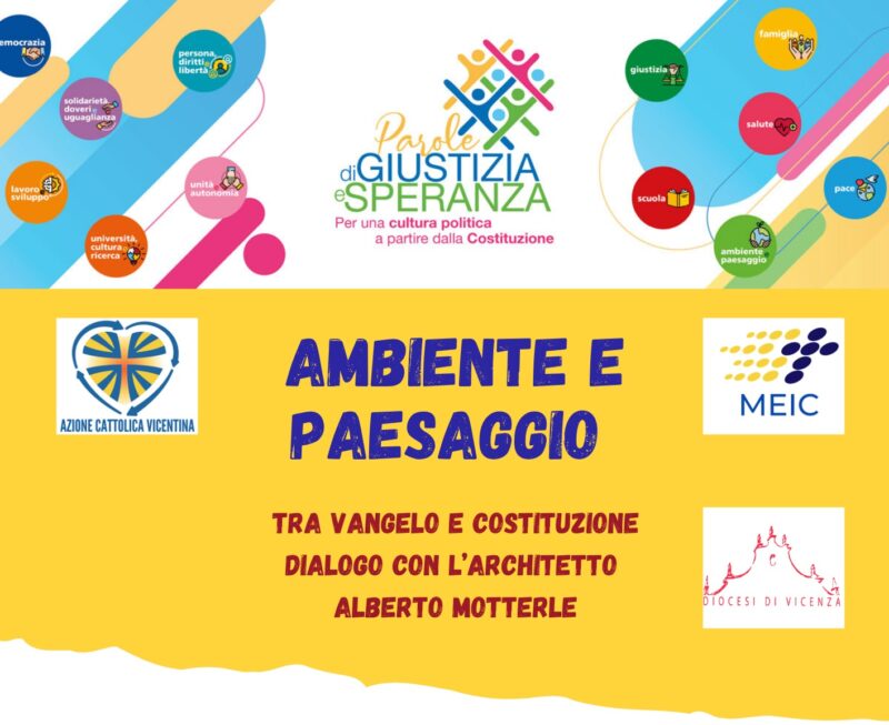 L’Azione Cattolica vicentina organizza assieme al Meic (Movimento Ecclesiale di Impegno Culturale) un incontro di studio su alcuni snodi fondamentali trattati nell’enciclica Laudato SII, documento fondamentale del magistero di Papa Francesco. In particolare grazie all’architetto Alberto Motterle ci si concentrerà sul rapporto tra ambiente e paesaggio, elementi fondamentali per permettere all’uomo di vivere in una condizione di benessere e felicità. Sullo sfondo, l’articolo 9 della … Continua a leggere