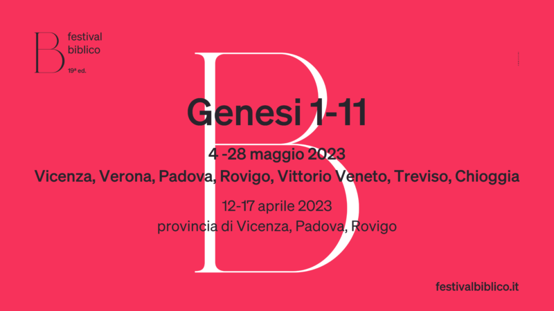 Festival Biblico 19° edizione Genesi 1-11 4-28 maggio Vicenza, Verona, Padova, Rovigo, Vittorio Veneto, Treviso, Chioggia 12-17 aprile province di Vicenza, Padova, Rovigo Siamo lieti di invitarvi alla conferenza stampa di presentazione della 19ª edizione del Festival Biblico che per il 2023 ha scelto Genesi 1-11 come titolo e filone tematico attorno al quale si articolerà la sua proposta culturale. L’incontro di presentazione si terrà … Continua a leggere »