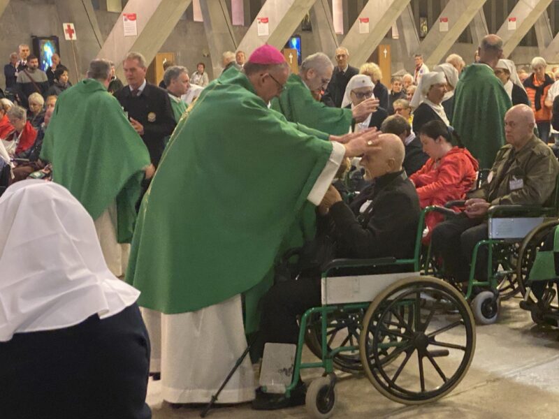 In questo secondo giorno a Lourdes si respira un clima di famiglia e di preghiera. Stamattina, dopo aver aiutato gli ammalati ad alzarsi e aver fatto insieme colazione, siamo partiti in processione verso la chiesa di San Pio X. Qui abbiamo celebrato con gioia la Santa Messa con l’unzione dei malati. Dopo la condivisione del pasto ci siamo riuniti di nuovo per vivere il sacramento … Continua a leggere