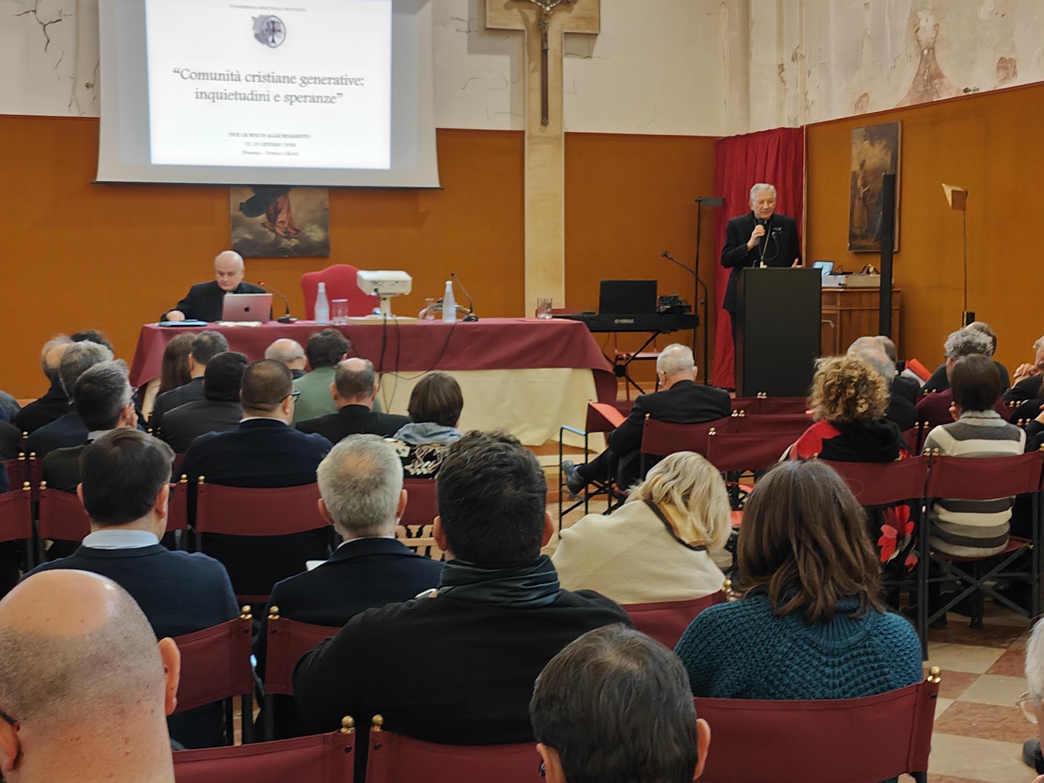 Nelle conclusioni del Vescovo di Chioggia Giampaolo Dianin sono risuonate alcune specifiche esigenze: uno sguardo umile e sapienziale sulla realtà, il costruire e coltivare comunità cristiane e relazioni autenticamente evangeliche, l’insistenza sulla ricerca dell’essenziale (anche con scelte coraggiose), l’attenzione ai giovani, alle famiglie e al ministero ordinato per continuare a generare quella pluriformità di vocazioni che caratterizza la comunità cristiana. “Ci deve interessare – ha detto – l’incontro appassionato con Gesù di ciascuno di noi e di quanti operano nelle nostre comunità, mettere al centro la vita delle persone ed evitare l’autoreferenzialità. Non bisogna temere di stare dentro alle questioni del lavoro, della famiglia, della scuola e della cultura anche e soprattutto quando si arrivano a mettere in discussione evidenze etiche che sembravano acquisite. È importante non avere paura delle soglie e dei cammini di ciascuno, non porre confini, avere la pazienza dei frutti, senza chiusure e senza timori”. Ed ha terminato il suo intervento richiamando ancora parole di Papa Leone XIV: “La fedeltà di Dio ci stupirà ancora”.