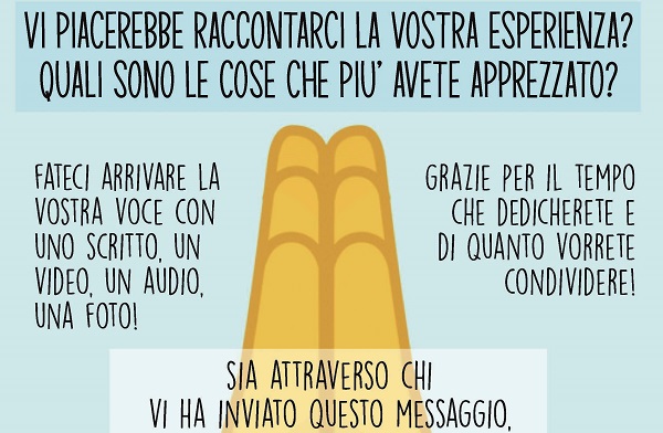 Ecco allora l’invito, innanzitutto attraverso il passaparola e la proposta personale, a raccontare la propria esperienza, quanto si è vissuto in queste settimane attraverso una delle tante modalità che la contemporaneità offre: un testo, un video, un audio, una foto e spedire il tutto a catechesi@vicenza.chiesacattolica.it oppure al numero WhatsApp di Radio Oreb 348.2760233.
