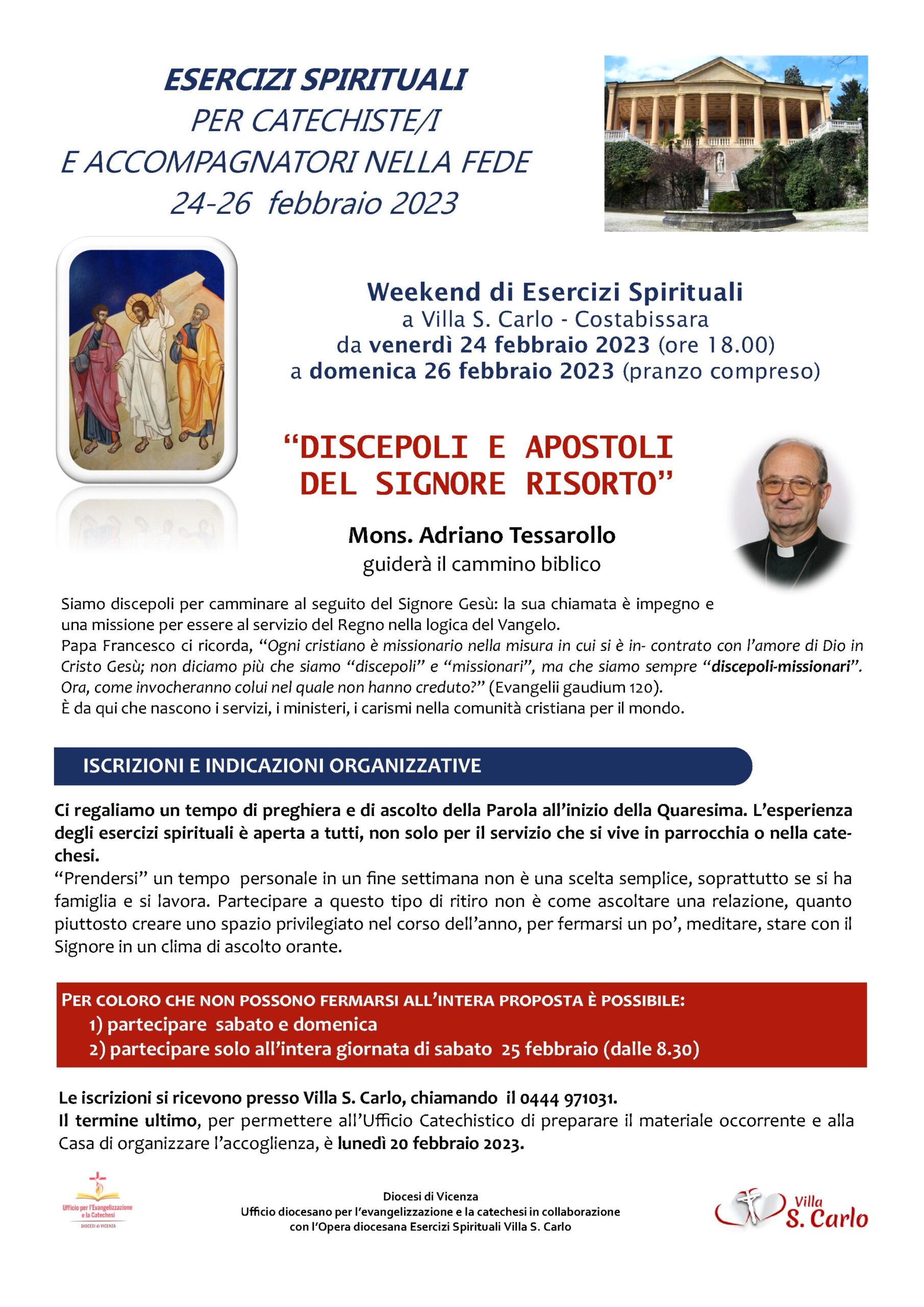 “DISCEPOLI E APOSTOLI DEL SIGNORE RISORTO” – WEEKEND DI ESERCIZI SPIRITUALI a Villa San Carlo di Costabissara – 24-26 febbraio 2023