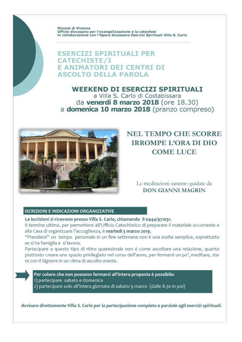 WEEKEND DI ESERCIZI SPIRITUALI a Villa S. Carlo di Costabissara