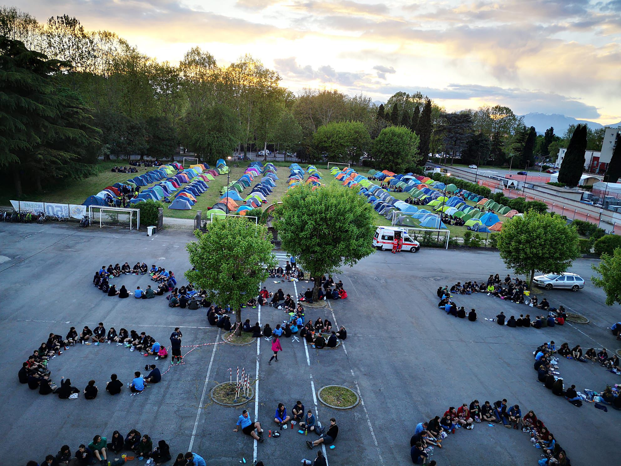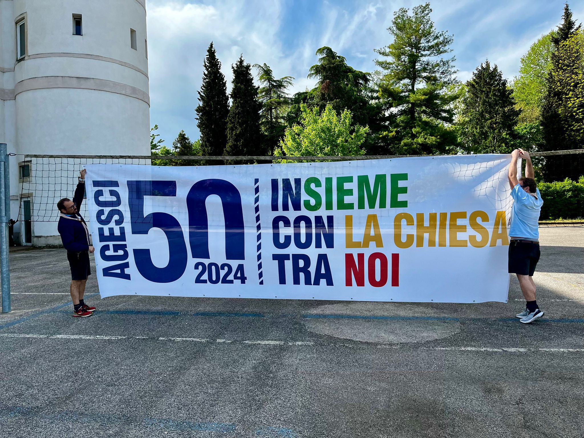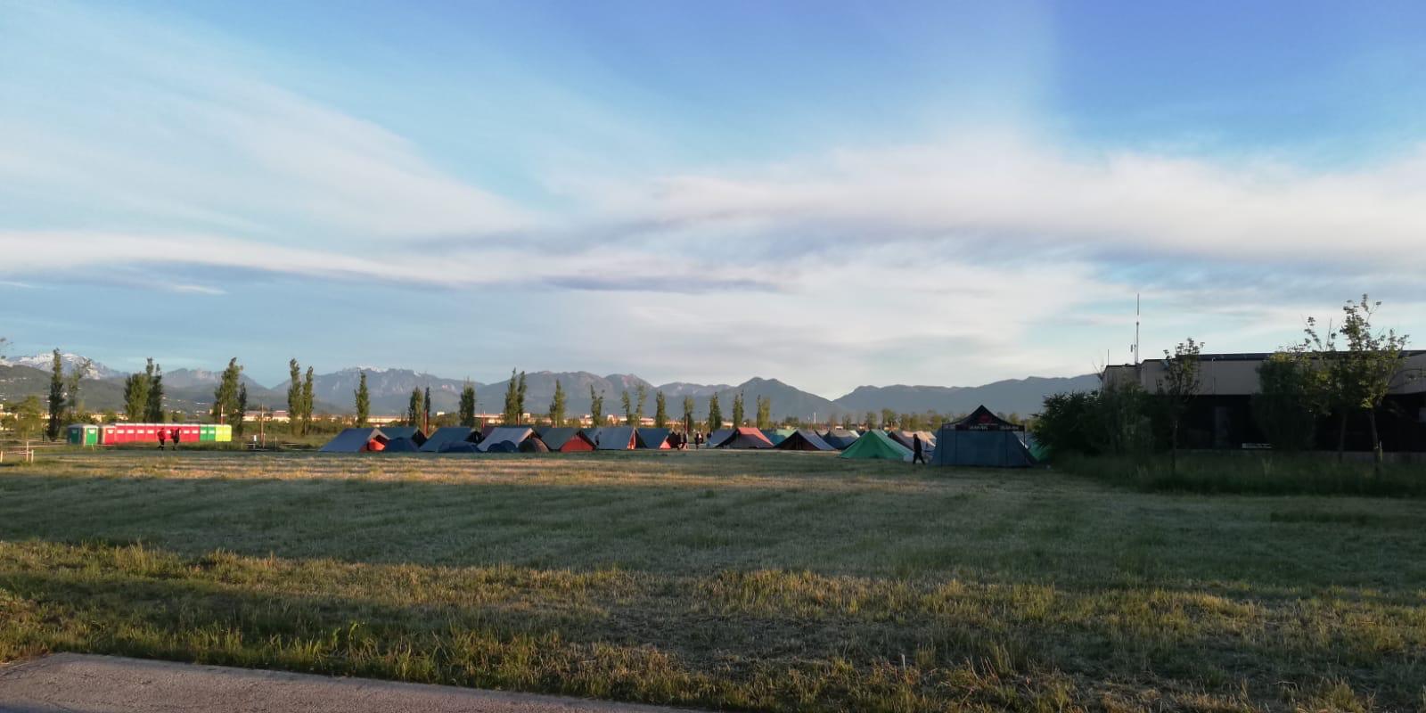 Il Parco della Pace a Vicenza dal pomeriggio di sabato 20 aprile ha iniziato a tingersi di azzurro per i festeggiamenti del 50esimo dei gruppi AGESCI della diocesi di Vicenza. L’afflusso di scout è stato continuo, fino alla Messa di domenica 21 aprile, quando dal palco si potevano osservare solo due colori: il verde del prato ed il celeste predominante grazie alle 4.500 uniformi AGESCI arrivate da tutta la diocesi. Molti anche i figli, ancora piccoli e non ancora in camicia azzurra, di giovani coppie presenti a confermare che gli scout coinvolgono proprio tutte le generazioni. Alla Messa conclusiva erano presenti alcuni rappresentanti del Comune di Vicenza, in particolare Isabella Sala, vicesindaca, ma anche rappresentanti dell’Azione Cattolica diocesana e di altri gruppi scout presenti nel territorio vicentino (FSE, Federazione Scout Europa, e il CNGEI, Corpo Nazionale Giovani Esploratori ed Esploratrici Italiani).