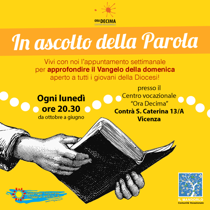 “In ascolto della Parola” è una proposta per giovani di approfondimento sul vangelo della domenica promosso dal centro vocazionale Ora Decima in collaborazione con la Pastorale Giovanile e la comunità Il Mandorlo.
