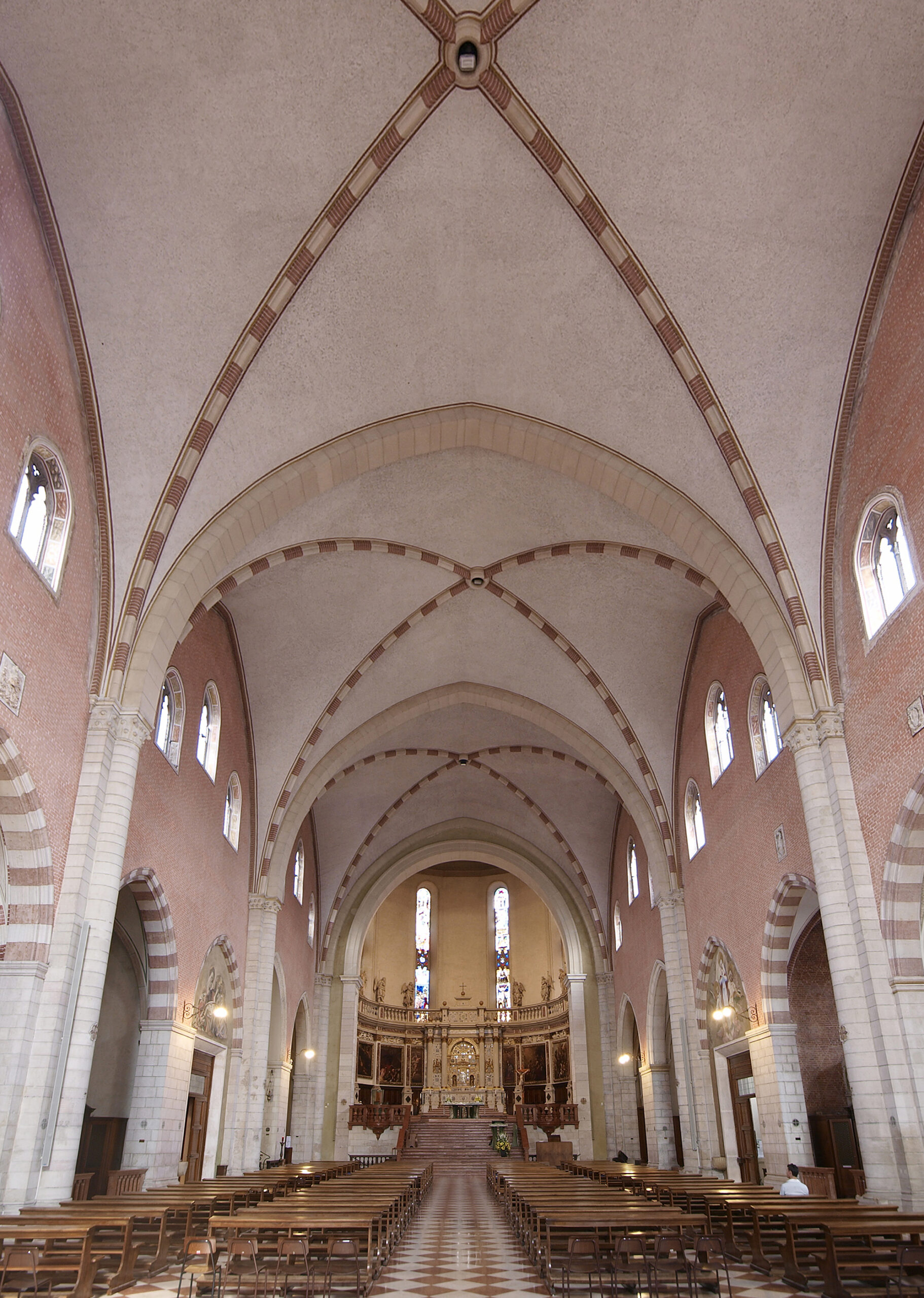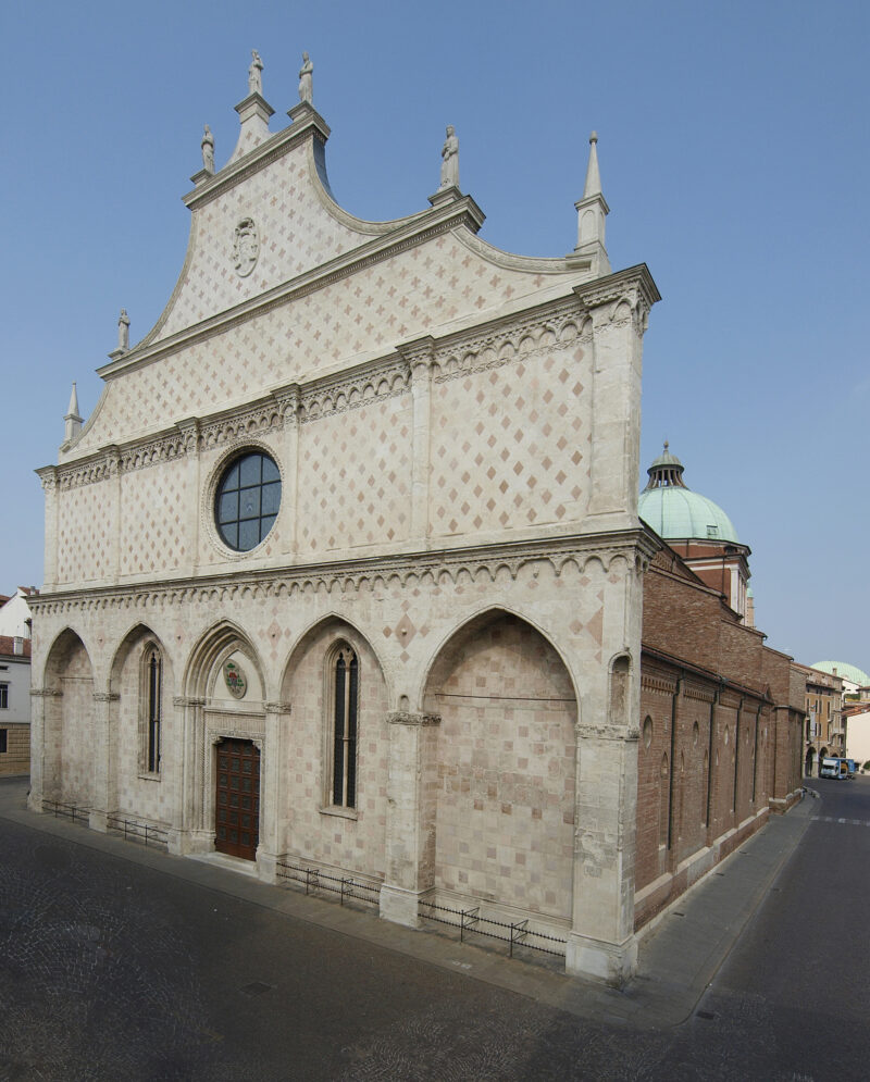 La Cattedrale di Vicenza si impone per la particolarità della sua facciata e la cupola palladiana sul panorama cittadino. Nelle losanghe sotto gli archetti del secondo ordine della facciata si legge sia la data, 1467, sia l’invocazione “Ave Maria” che ricorda la Vergine titolare della Cattedrale.