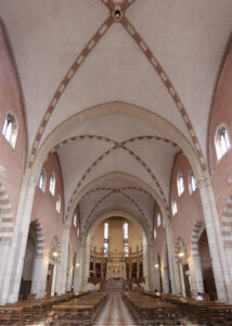 Questa basilica – dedicata alla santa martire Eufemia – sarà la chiesa Cattedrale di Vicenza per tutta l’epoca longobarda e carolingia, con arricchimenti lapidei interessanti.