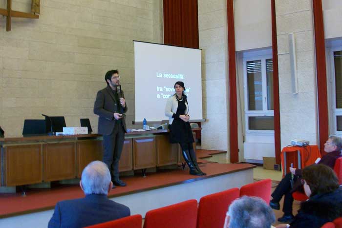 “La sessualità: tra sovversione e conversione” è il tema trattato nella lezione del 10 marzo 2014 della Scuola del Lunedì, nel Centro Diocesano “Mons. Arnoldo Onisto” di Vicenza, dove in qualità di relatori sono intervenuti i dottori Giampietro Borsato, docente ed educatore, e Manola Tasinato, medico ed esperta in educazione sessuale (ascolta la relazione).