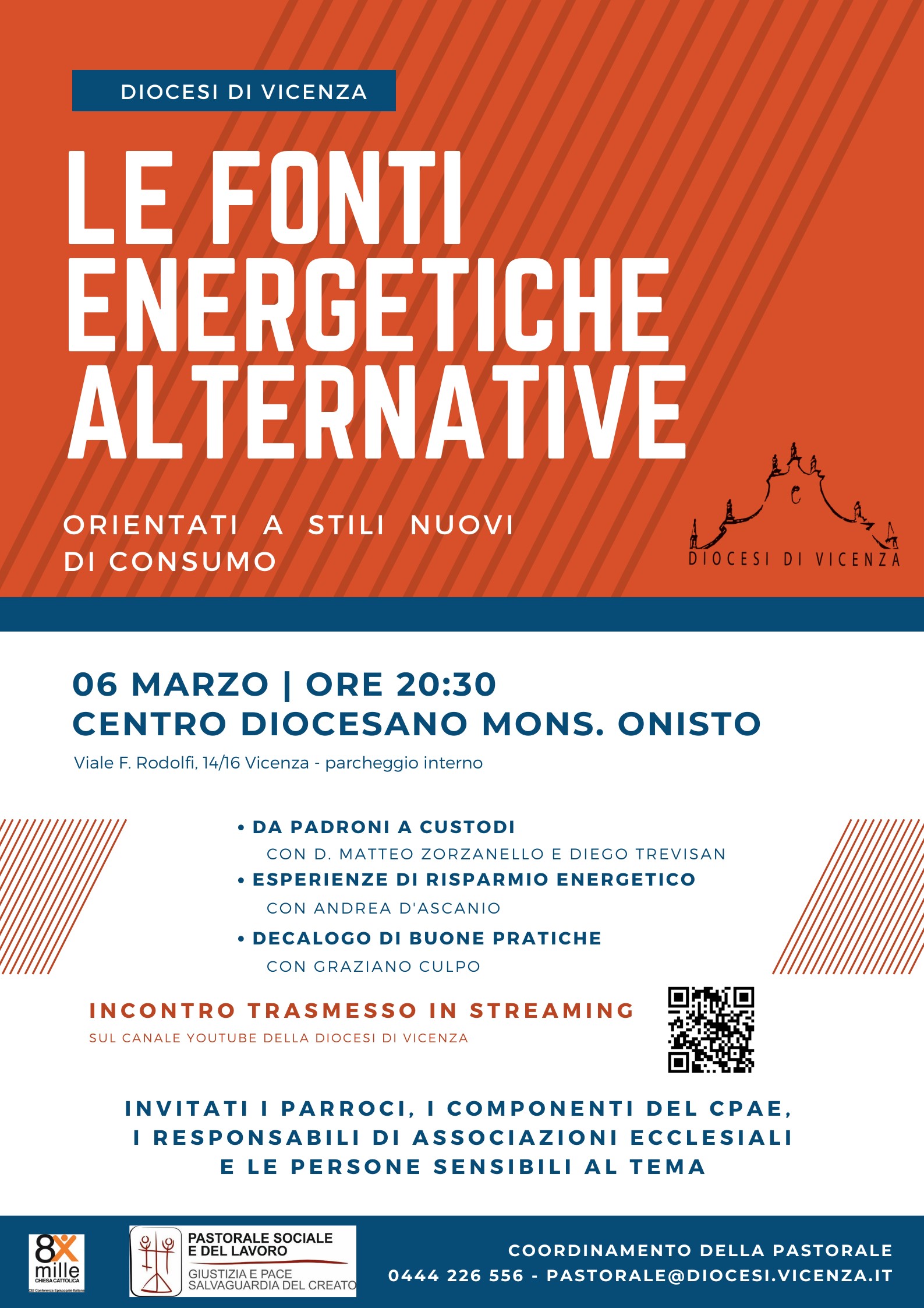 Sollecitati dalla “Laudato” sì di papa Francesco e dalle urgenze che in questo inverno hanno interessato anche le nostre parrocchie e le strutture pastorali, proponiamo un incontro per parroci, componenti dei Consigli per gli affari Economici, per responsabili delle associazioni ecclesiali e per le persone sensibili al tema degli “stili di vita”.
