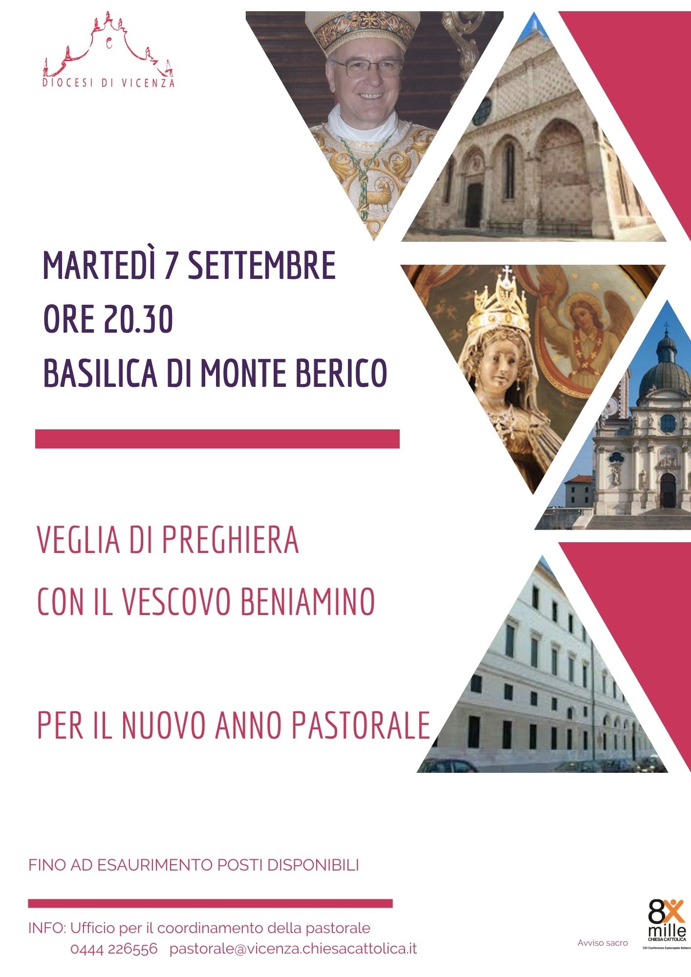 Anche per quest’anno non potremo vivere il tradizionale pellegrinaggio, perché sono ancora vigenti le norme di sicurezza sanitaria anti-covid-19. Tuttavia, abbiamo la possibilità di incontrarci all’interno della Basilica di Monte Berico, sempre nella serata del 7 settembre 2021, alle ore 20,30 per una veglia di preghiera, durante la quale presenteremo alla Madre del nostro Salvatore le nostre preghiere e suppliche.