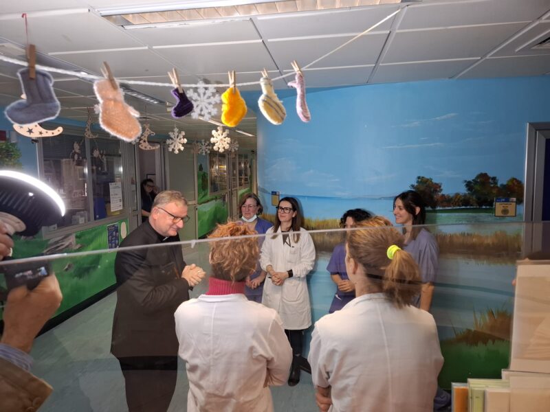 Anzitutto: grazie. Grazie alle mamme e ai papà che qui attraversano la gioia e la paura, l’attesa e la responsabilità. Grazie a chi porta in grembo una vita e, insieme, porta domande, preoccupazioni, talvolta ferite. Grazie al personale sanitario, alle ostetriche, ai medici, agli infermieri e a tutti gli operatori: in voi si vede una forma preziosa di cura che diventa, spesso, consolazione e speranza.