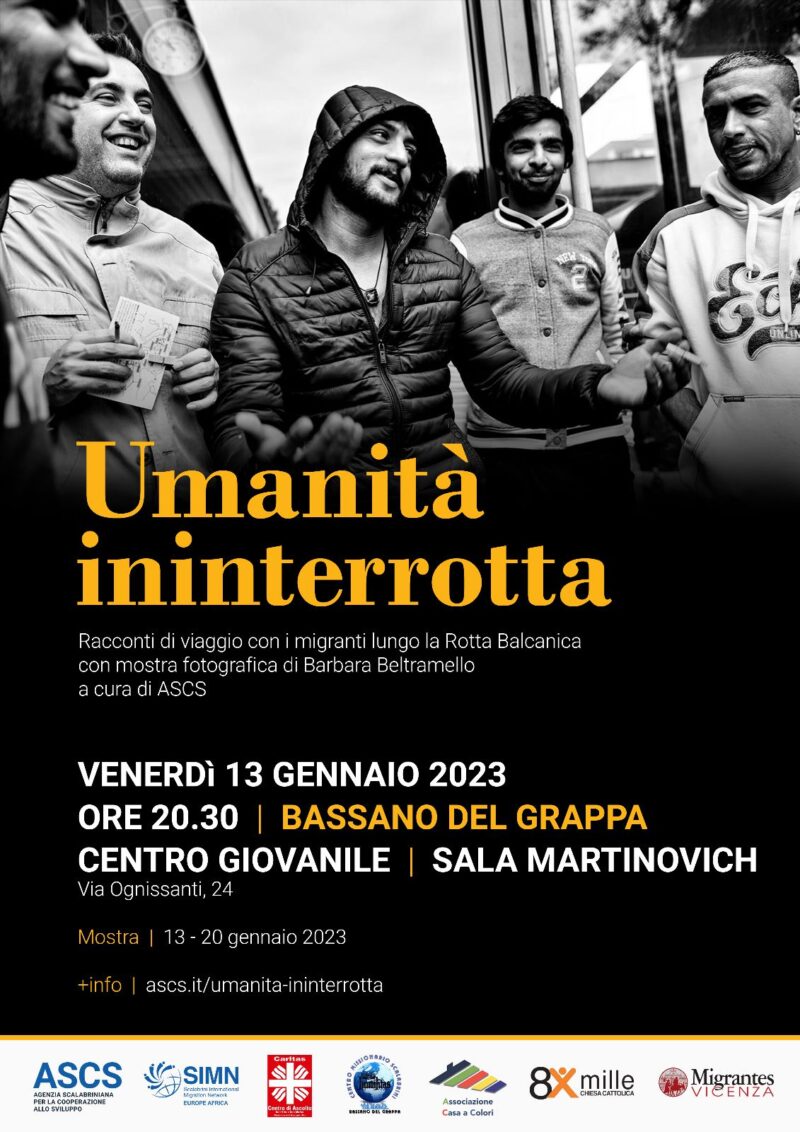 Il 6 gennaio 2023, in occasione della Festa dei Popoli, dopo la messa in Cattedrale sarà inaugurata nel Palazzo delle Opere Sociali la mostra fotografica ‘Umanità InInterRotta’: un racconto in immagini di storie, voci, sogni e diritti calpestati quotidianamente lungo la Rotta Balcanica, alle frontiere dell’Europa. «L’obiettivo della mostra – spiega padre Sergio Durigon, responsabile Migrantes Vicenza – è che i migranti che attraversano l’Europa a piedi abbiano voce». La mostra è realizzata dalla fotografa Beatrice Beltramello.