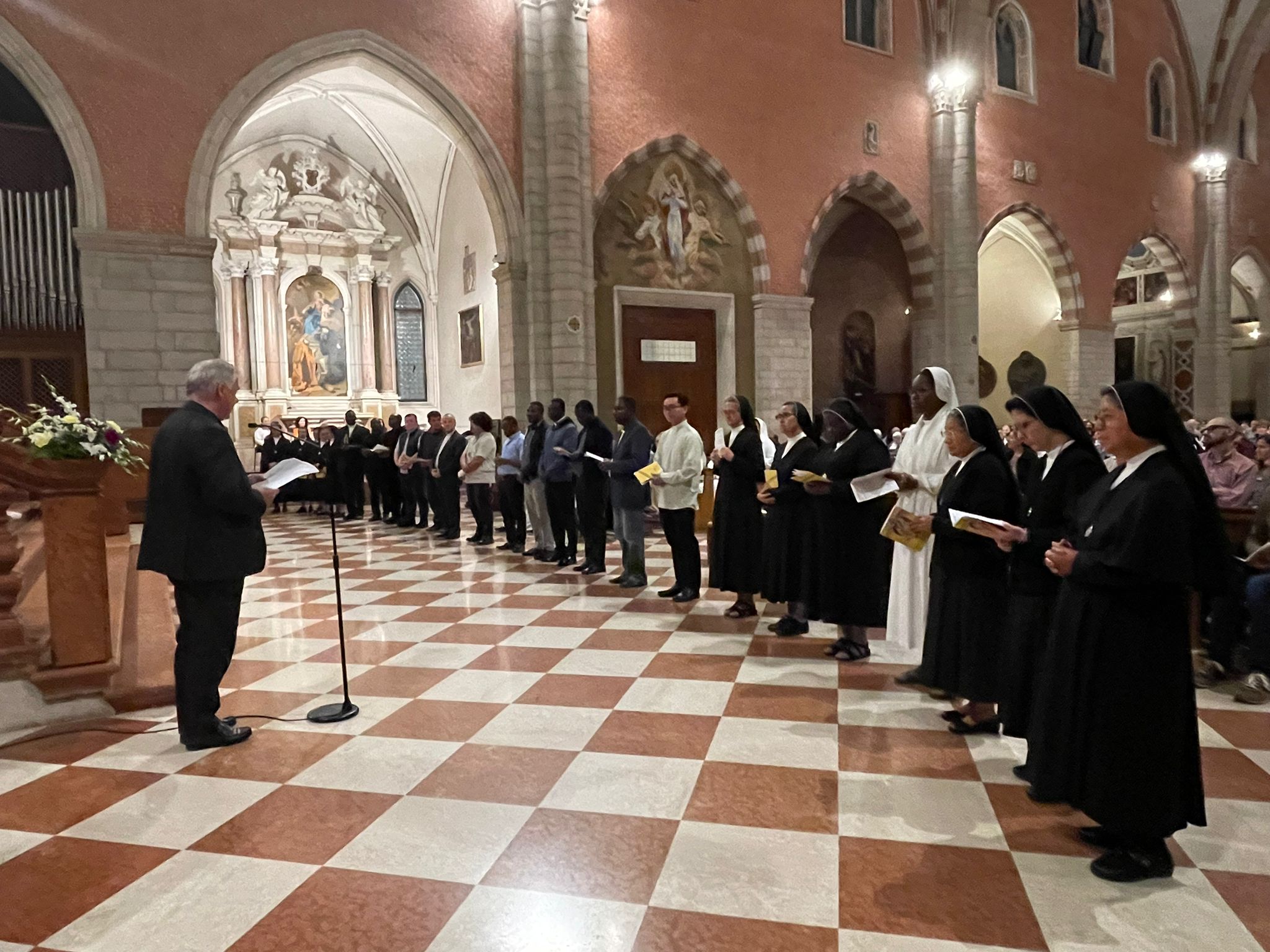 A tutti i chiamati è stato consegnato il crocifisso dal Vescovo Giuliano o dai tre vicari episcopali come segno d’invio missionario.