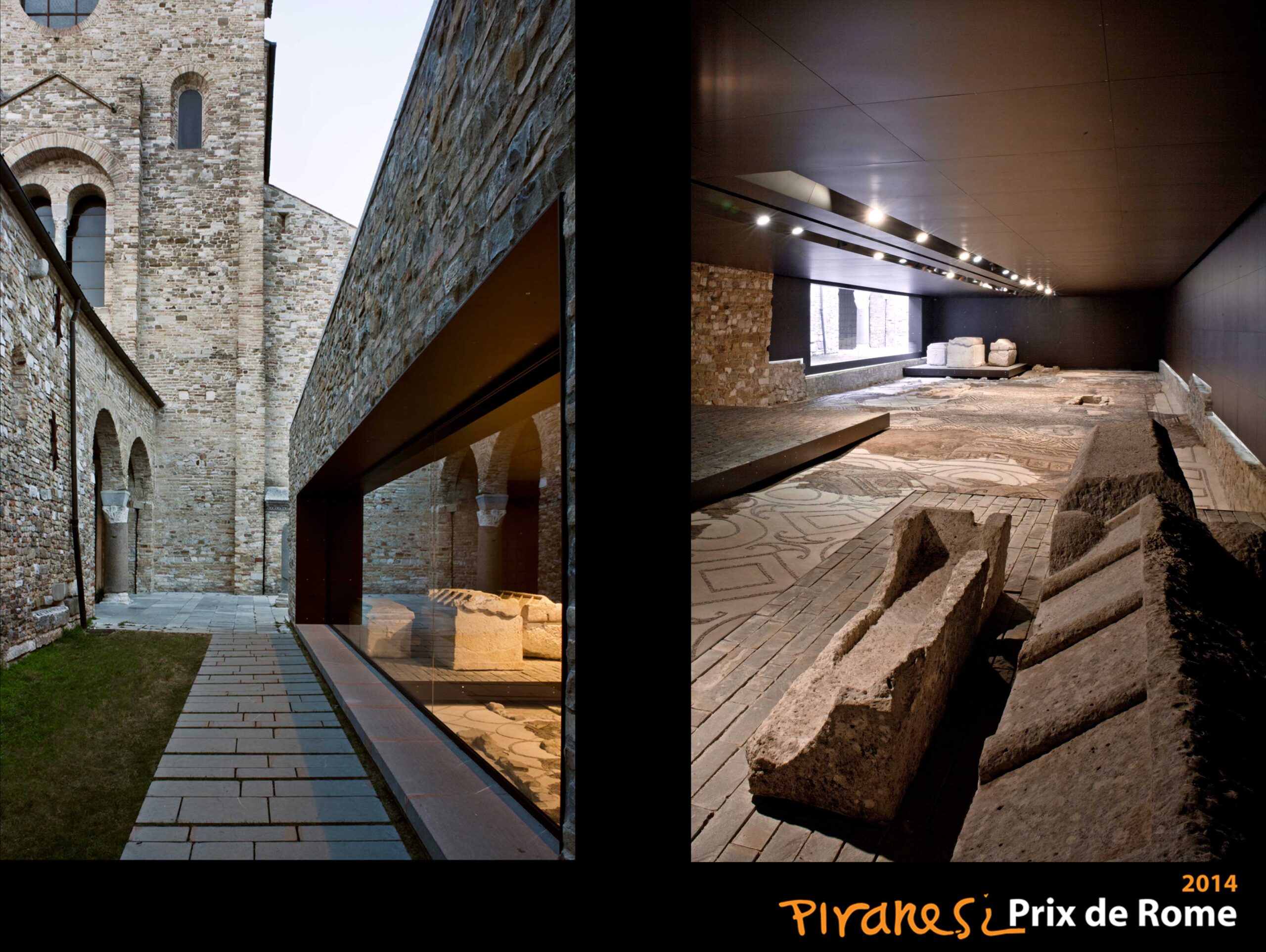 La sistemazione delle piazze della basilica patriarcale di Aquileia e la musealizzazione dei mosaici della Sud Halle, l’Aula di Cromazio, rappresentano uno dei più significativi contributi di architettura per l’archeologia del panorama internazionale. Ad attestarlo è il Primo “Premio Piranesi – Prix de Rome 2014“, vinto il 29 agosto 2014 da Giovanni Tortelli e Roberto Frassoni, gli architetti che hanno firmato il progetto e che nel 2005 hanno ideato l’allestimento del Museo Diocesano di Vicenza.
