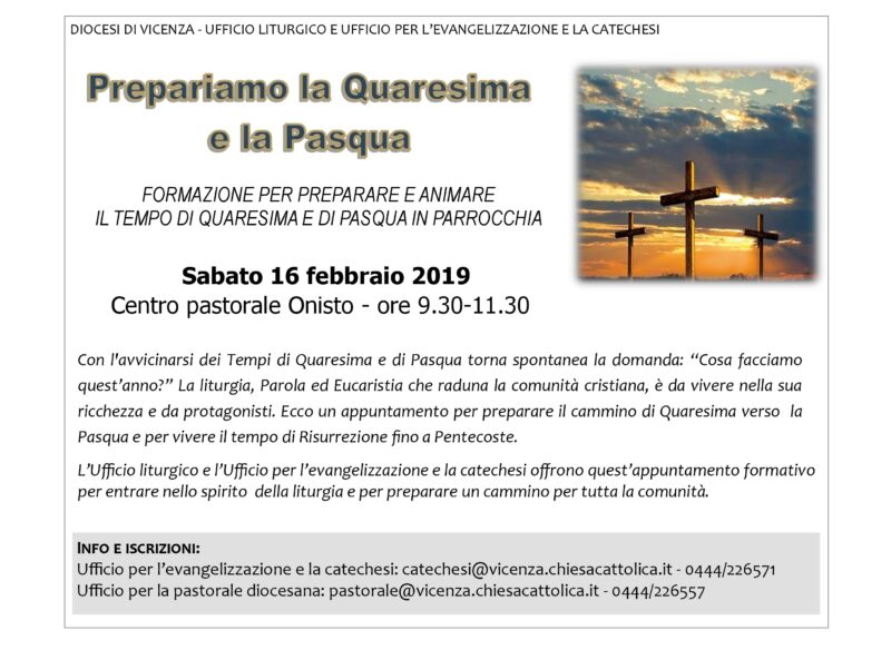 Ufficio per l’evangelizzazione e la catechesi: catechesi@vicenza.chiesacattolica.it – 0444/226571