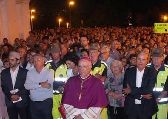 Voglio ricordare questa sera, davanti al Santuario della Madonna di Monte Berico, quel “fiume di carità e di solidarietà” che ha caratterizzato le nostre comunità cristiane, con la guida dei loro pastori, attraverso il servizio dei diaconi e la testimonianza dei consacrati e delle consacrate: i sostegni di “vicinanza” per le famiglie in difficoltà; il servizio alle mense dei poveri gestite dalla Caritas, dalla San Vincenzo e da alcune comunità religiose; la visita cordiale ai malati e agli anziani nelle loro famiglie, negli ospedali e nelle case di riposo; la visita ai carcerati, la cura nel prepararli all’inserimento nella società; la vicinanza e la solidarietà verso le persone con qualche disabilità che vivono in famiglia o che trascorrono parte del loro tempo in centri diurni, oppure, residenziali; l’accoglienza fraterna nelle nostre strutture abitative di piccoli nuclei o famiglie di immigrati; e a livello sociale le manifestazioni pubbliche per promuovere la pace, per stigmatizzare la tratta degli esseri umani o per la difesa e la salvaguardia del creato; infine, desidero ricordare la decisione presa dalla nostra diocesi — attraverso gli organismi di partecipazione — di aprire una nuova missione nella diocesi di Beira, in Mozambico, con l’invio di due nostri preti come fidei donum. Questa missione sarà condivisa e sostenuta anche da un prete della diocesi di Adria-Rovigo, dai missionari della Pia Società San Gaetano e dalle Suore Orsoline di Vicenza, già presenti in quel territorio da diversi anni.