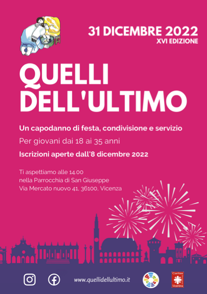 Dopo due anni di restrizioni a causa del covid, Quelli dell’Ultimo torna nella sua veste consueta: un capodanno di condivisione, festa e servizio per tutti i giovani dai 18 ai 35 anni!