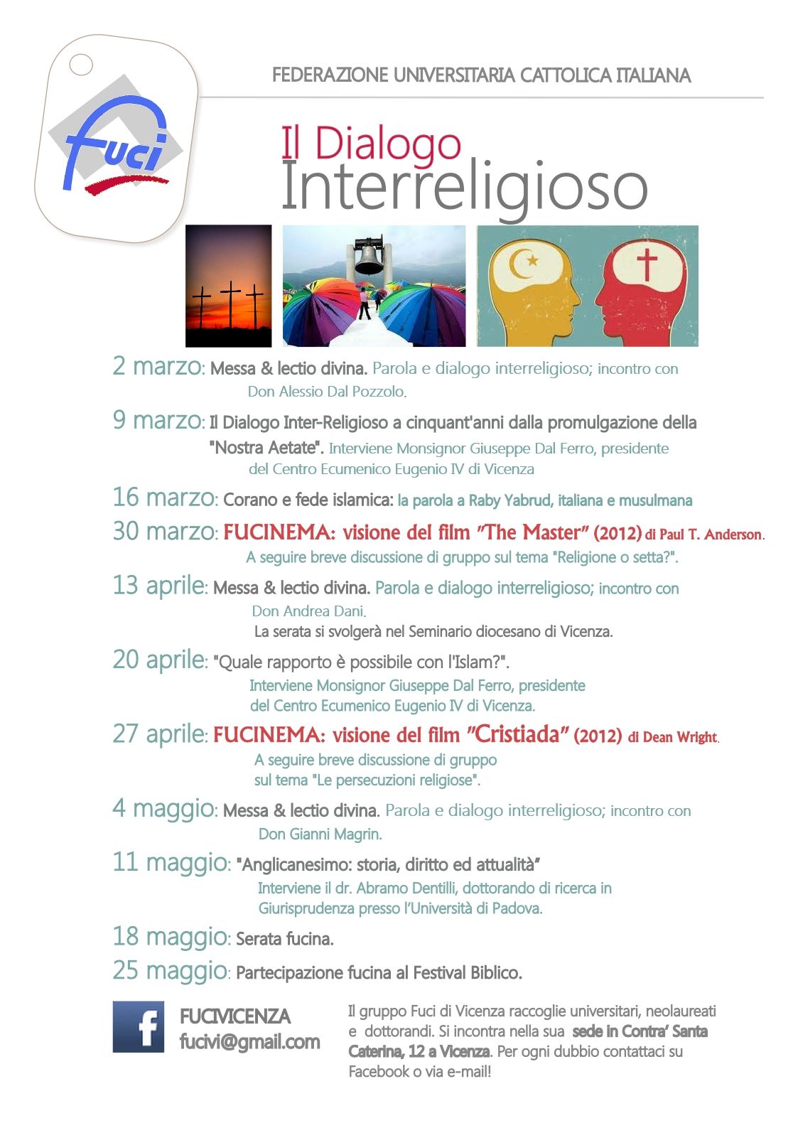 Il calendario prosegue fino alla fine del semestre universitario, e si conclude con la proposta di partecipazione al Festival Biblico nella serata del 25 maggio.