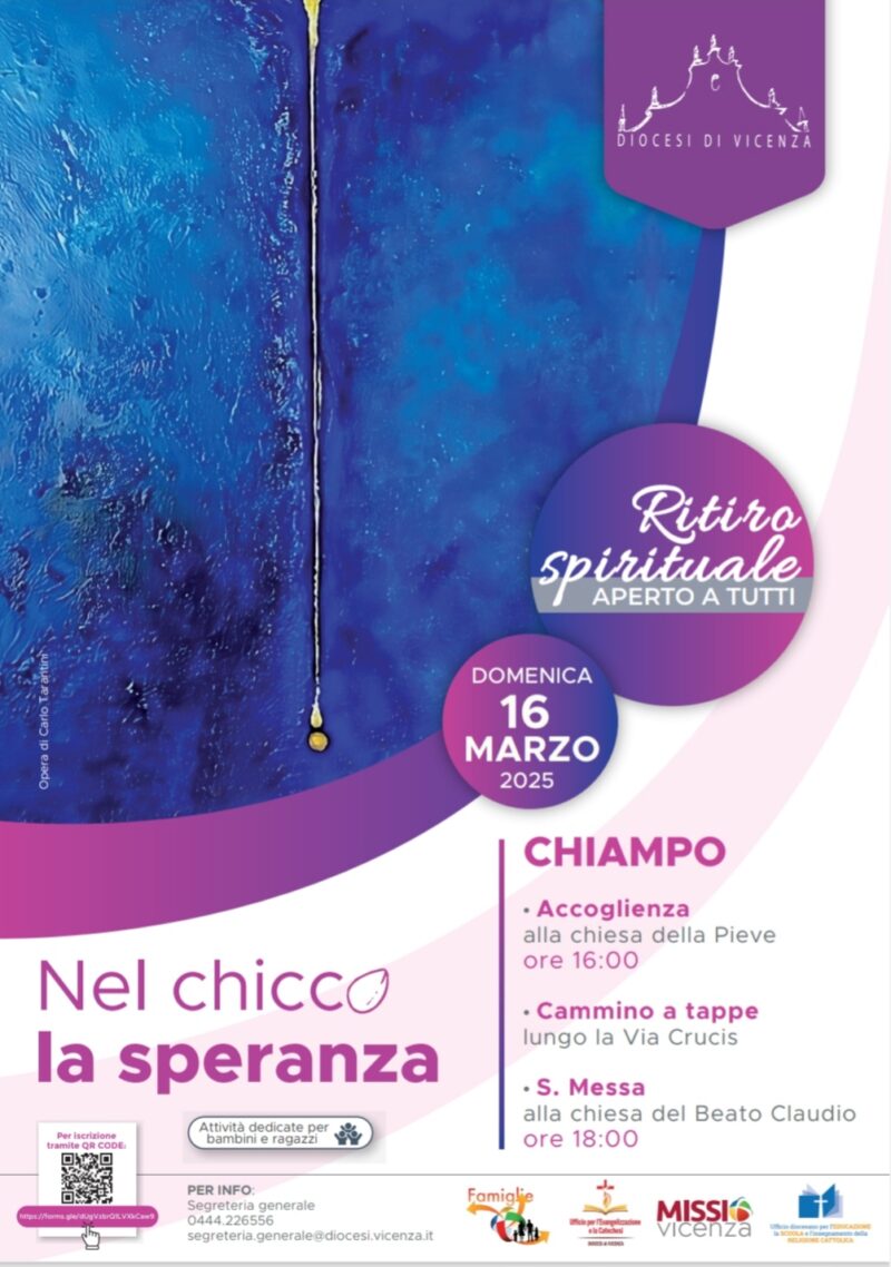 Domenica 19 ottobre 2025 ore 14/19.30 Convegno degli animatori dei percorsi nubendi in Centro diocesano A. Onisto, via Rodolfi, 14/16 – Vicenza. Sarà una occasione per conoscersi meglio tra animatori, condividere le esperienze, confrontarsi sulle metodologie adottate nei diversi percorsi e ragionare su come affrontare le sfide che la società pone. Un tempo per crescere insieme in questo importante servizio alla Chiesa e alle coppie … Continua a leggere