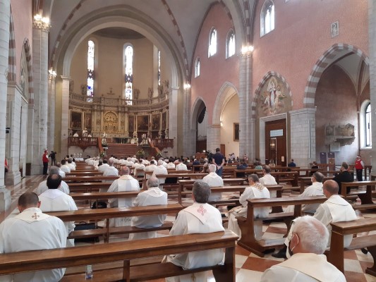 Carissimi sacerdoti e diaconi, desidero ringraziarvi per il generoso e infaticabile servizio che rendete alla Chiesa diocesana, soprattutto alle persone più fragili, più povere e meno garantite. Esprimo la mia gratitudine e la mia riconoscenza ai presbiteri diocesani e religiosi che festeggiano quest’anno un anniversario significativo della loro ordinazione.