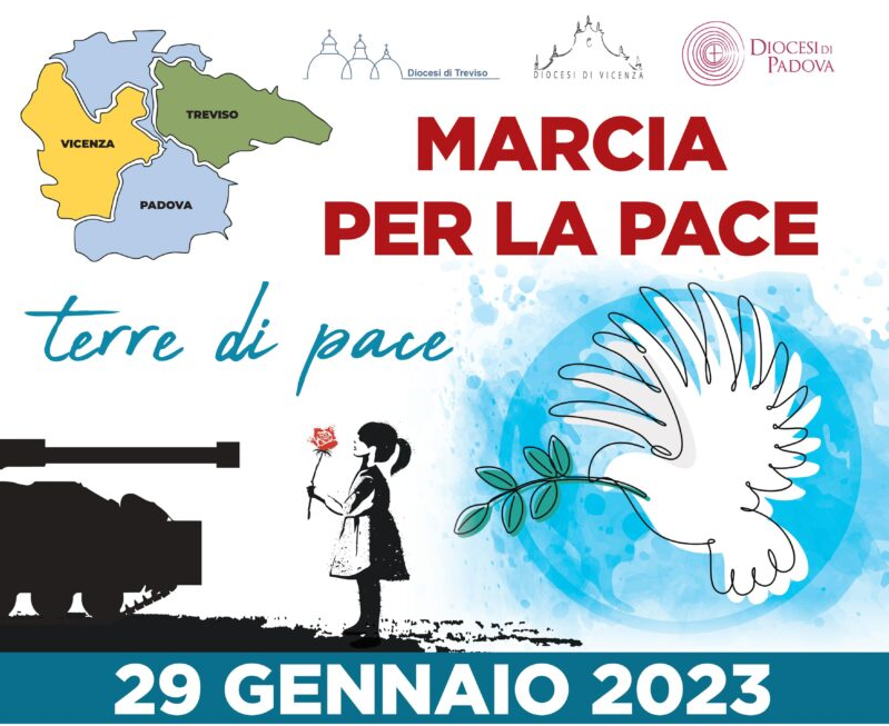 Le diocesi di Vicenza, Padova e Treviso lanciano l’invito a marciare insieme per la pace domenica 29 gennaio 2023 da Fellette di Romano d’Ezzelino a Bassano del Grappa. A quasi un anno dall’inizio della guerra in Ucraina e senza dimenticare gli innumerevoli conflitti in corso in tante parti del mondo, le tre diocesi hanno organizzato questa marcia intitolata “Terre di pace” in una zona di confine tra i loro rispettivi territori, per esprimere così simbolicamente il desiderio di imparare a camminare assieme e ad essere abitanti di luoghi di incontro e non solo gente di passaggio in territori confinanti.