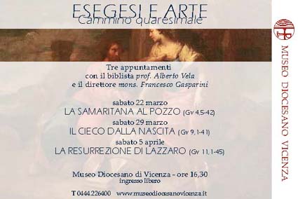 Il biblista Alberto Vela e il direttore del Museo Diocesano di Vicenza mons. Francesco Gasparini sono i relatori del ciclo di incontri “Esegesi e arte: cammino quaresimale”, che prenderà il via il 22 marzo 2014 e proseguirà nei due sabati successivi.