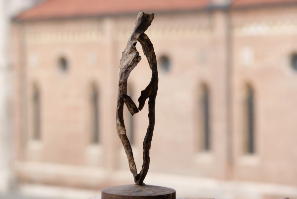 La vita dalla morte. La testimonianza di Cristo a partire dalla distruzione della guerra. In poche parole si può intendere il significato più intimo e profondo di una mostra lirica e struggente ad un tempo. Una mostra che nasce dalla sofferenza umana e ne interpreta tuttavia i percorsi di un’elevazione spirituale sostanziatasi nel messaggio poetico del materiale impiegato e del linguaggio adottato dallo scultore.