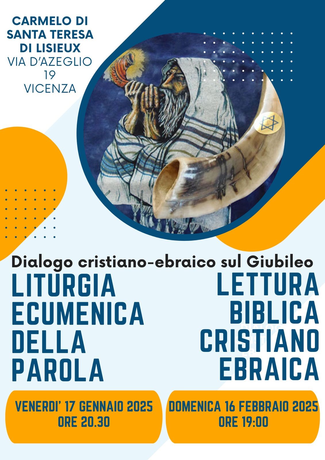 Seguirà in febbraio un incontro biblico con la presenza del rabbino della comunità ebraica di Verona-Vicenza. Questo appuntamento sarà domenica 16 febbraio alle 19,00 sempre al Carmelo di Vicenza.