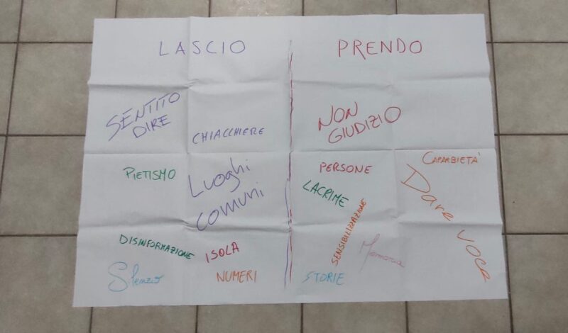 Nel cuore di questo quinto giorno due sono le esperienze che ci hanno particolarmente segnato. La prima è stata quella di provare ad avvicinarci a piedi all’hotspot, pur sapendo che sarebbe stato impossibile entrarvi. Una volta giunti davanti al cancello non abbiamo potuto fare altro che tentare di scorgere qualcosa dalle recinzioni, ed essere riusciti anche solo ad udire le voci di chi vi si trova all’interno è stato per noi tutti significativo.
