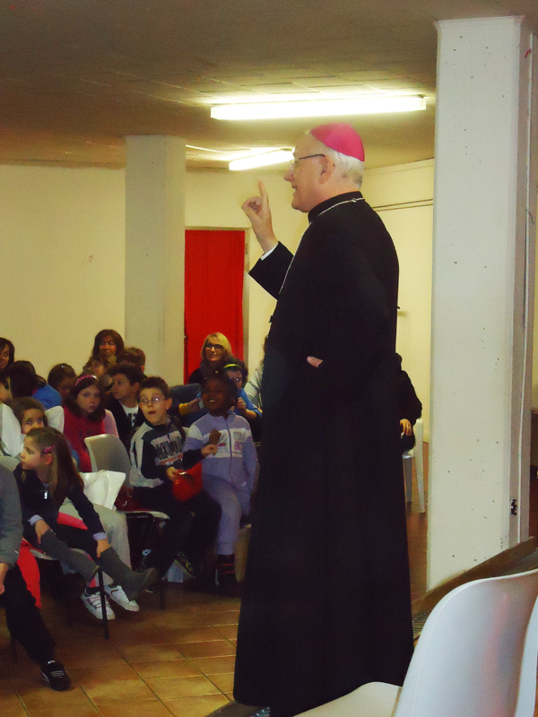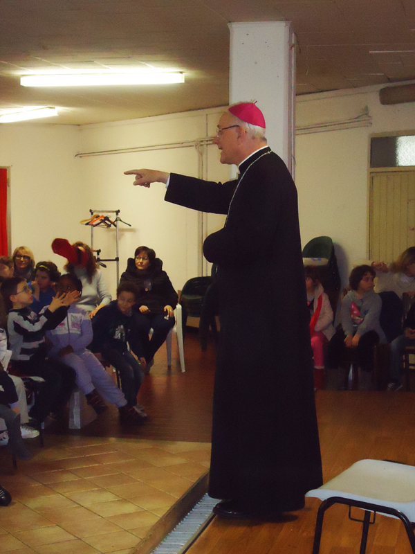 Monticello di Fara, sabato 8 febbraio 2014: il Vescovo Beniamino Pizziol all’incontro con i ragazzi del catechismo e i loro educatori nel corso della Visita Pastorale all’U.P. Monticello di Fara-Sarego