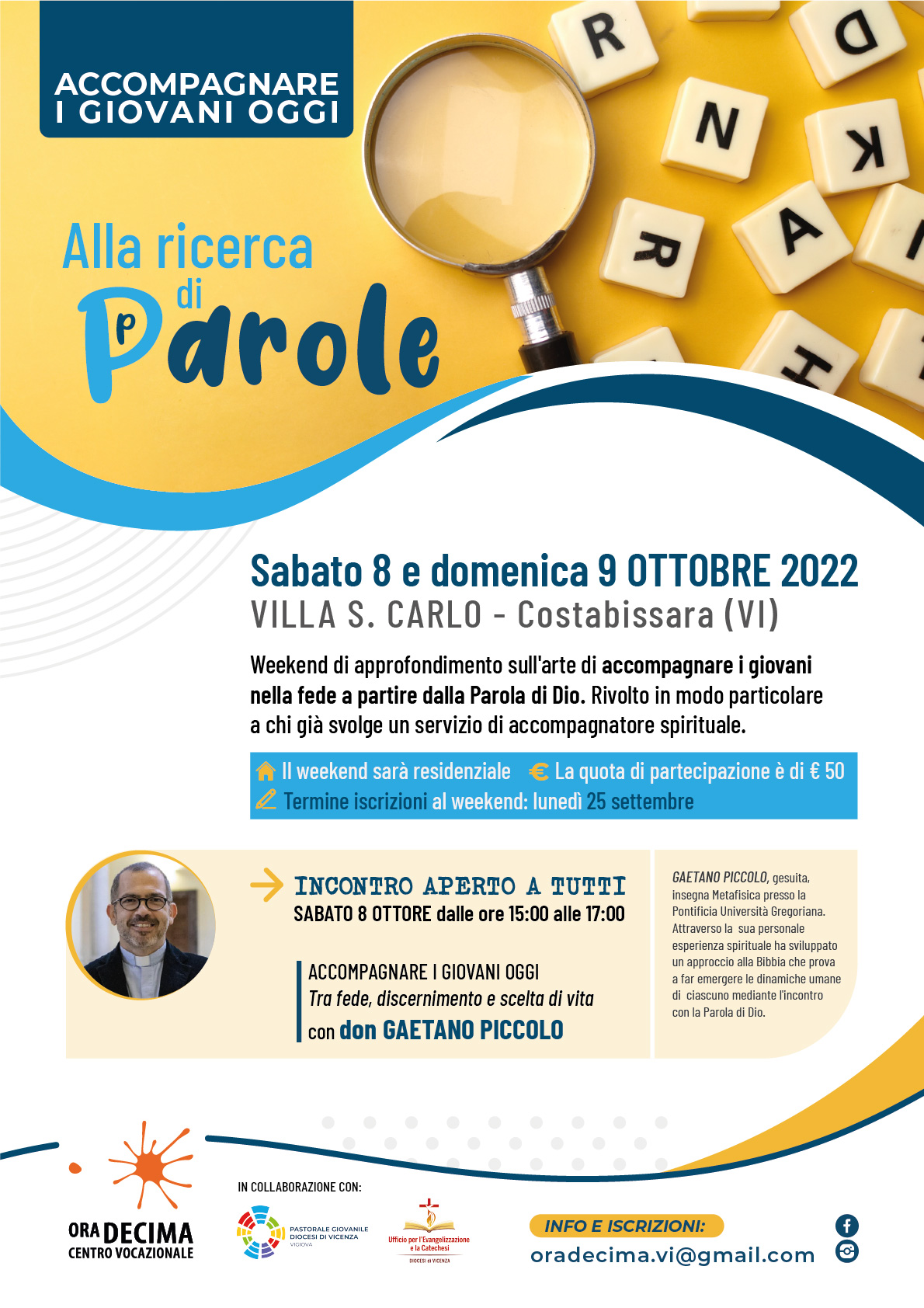 Sabato 8 ottobre incontro aperto a tutti con il gesuita Gaetano Piccolo sull’accompagnamento dei giovani tra fede, discernimento e scelte di vita.
