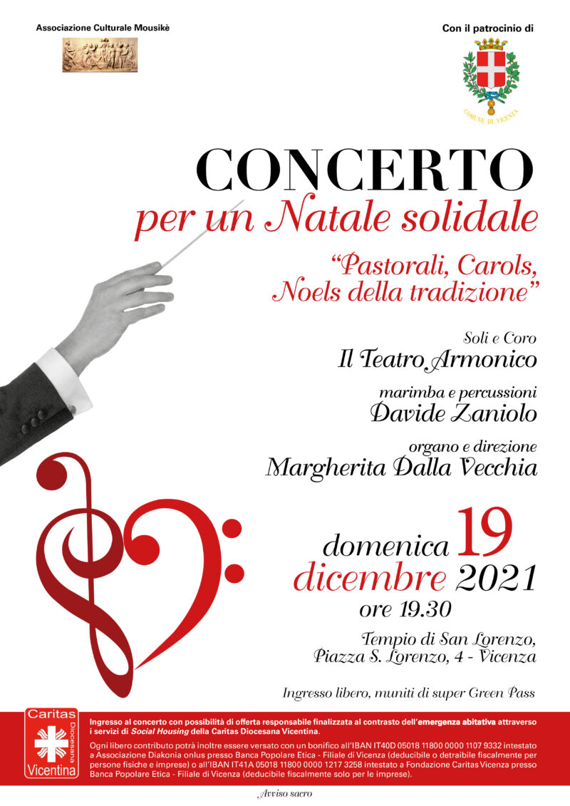 L’ingresso è libero, muniti di super green pass, con possibilità di offerta finalizzata al contrasto dell’emergenza abitativa attraverso i servizi di social housing di Caritas Diocesana Vicentina.