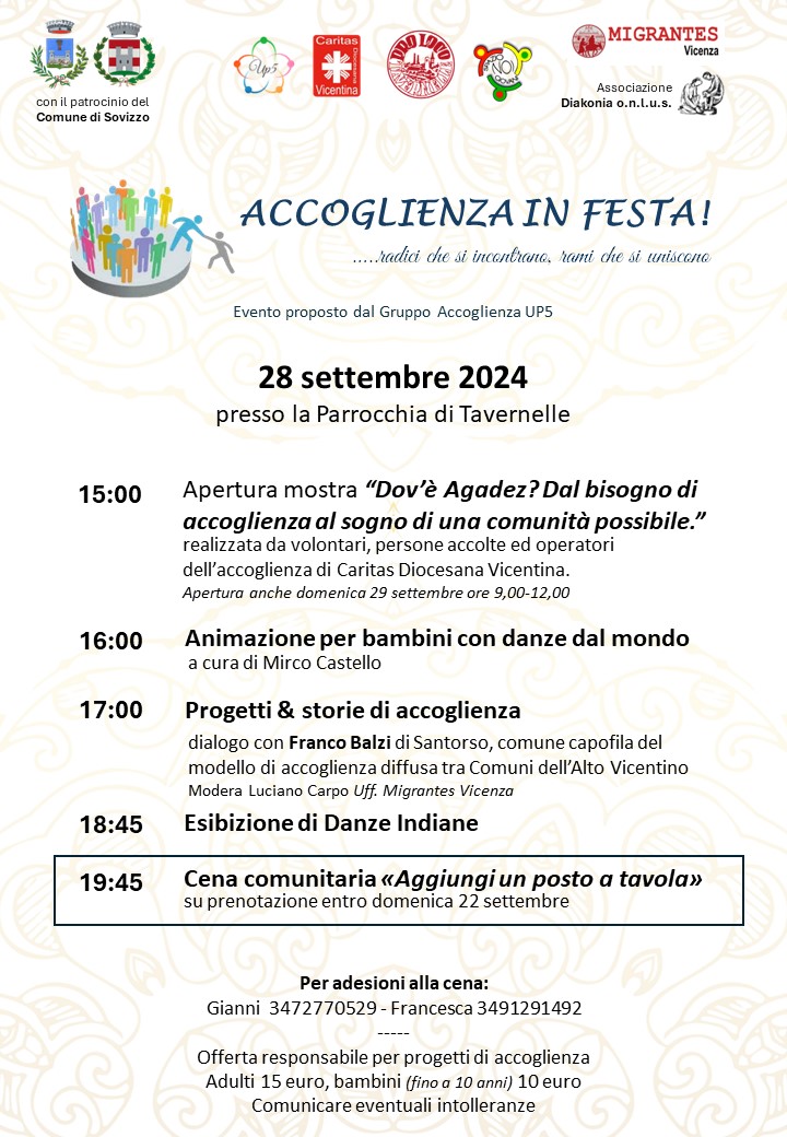 Il 28 settembre il “Dov’è Agadez Festival” sbarca a Tavernelle di Sovizzo (Parrocchia di S. Maria Nascente, viale dei Tigli) con una serie di appuntamenti: