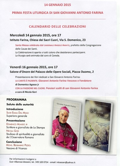 Mercoledì 14 gennaio 2015, ore 17, Chiesa dell’Istituto Farina, Via S. Domenico, 23.