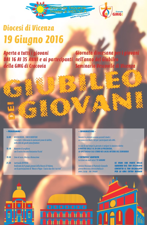 Vescovo 10 Gennaio 2016 sEEd_aDm_wP Giubileo dei Giovani domenica 19 Giugno Descrizione: Seminario Vescovile – Un pomeriggio di giochi, una serata di musica e spettacolo. Per tutti i giovani della diocesi, un appuntamento per giubilare assieme! Scarica la locandina Inizio: 19/06/2016 16:00 Fine: 19/06/2016 16:00 Categorie: Vescovo Allegati: Giubileo-vicenza-600-1Giubileo-vicenza-600-1 Giubileo-vicenza-600-1