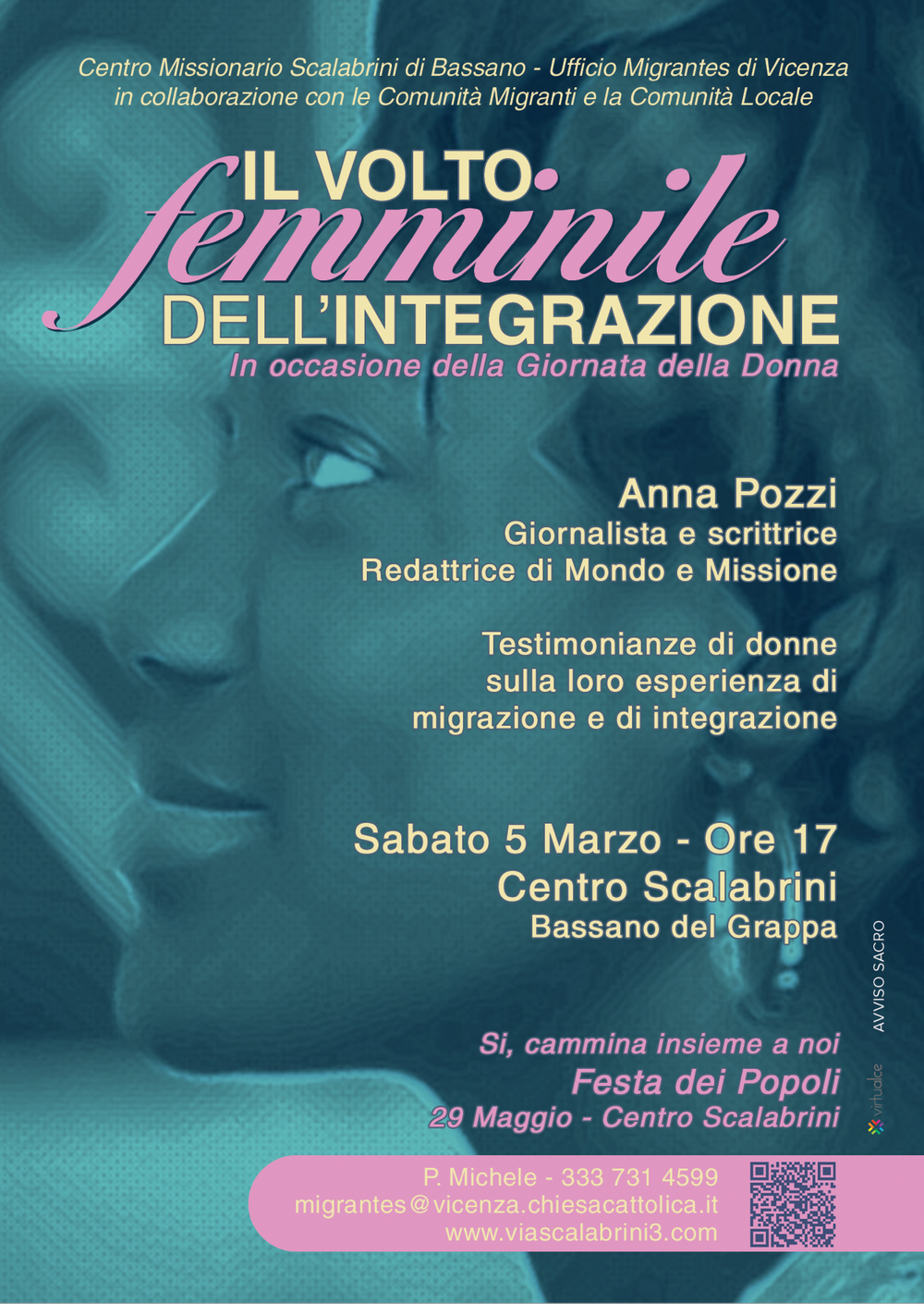L’Ufficio Diocesano della Migrantes, il Centro Missionario Scalabrini di Bassano del Grappa, in collaborazione con la Comunità locale e con le comunità di immigrati del territorio, organizzano a Bassano del Grappa un percorso intitolato “Si, cammina insieme a noi” caratterizzato da vari momenti, e che ha come culmine la Festa dei Popoli, il giorno 29 Maggio. Per l’occasione sono state contattate varie comunità etniche per invitarle ad essere presenti e collaborare nella organizzazione di questo evento. La seconda tappa di questo percorso è: