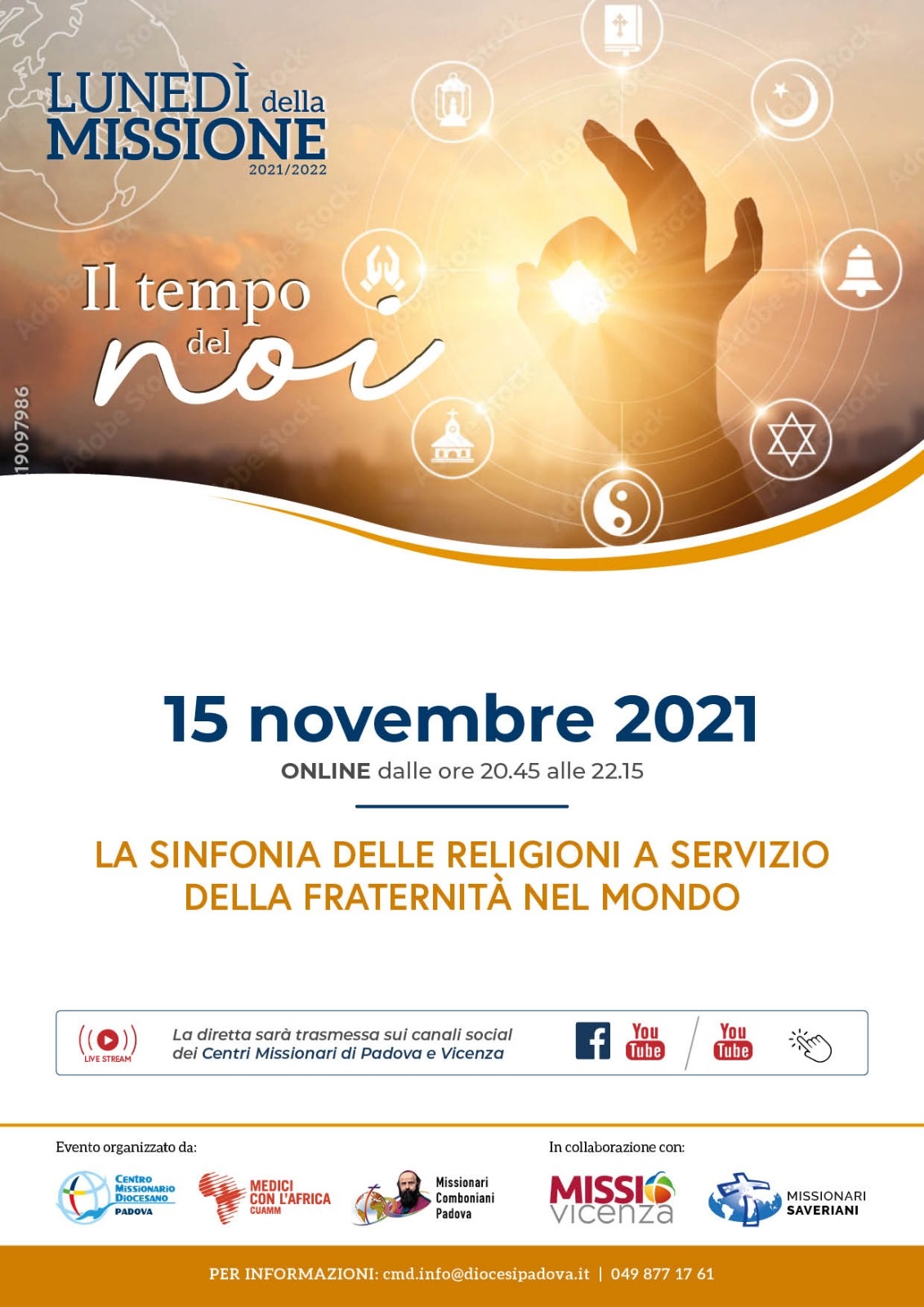 Il prossimo appuntamento toccherà il seguente tema: “La sinfonia delle religioni a servizio della fraternità nel mondo“. Si potrà seguire dal nostro Canale YouTube di Missio Vicenza. Vi aspettiamo!!