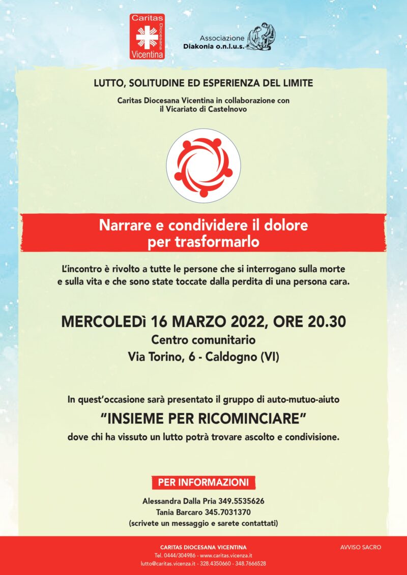Nel corso dell’incontro verrà presentato il nuovo Gruppo di Auto Mutuo Aiuto “Insieme per ricominciare”, in cui chi ha vissuto un lutto potrà trovare ascolto e condivisione.