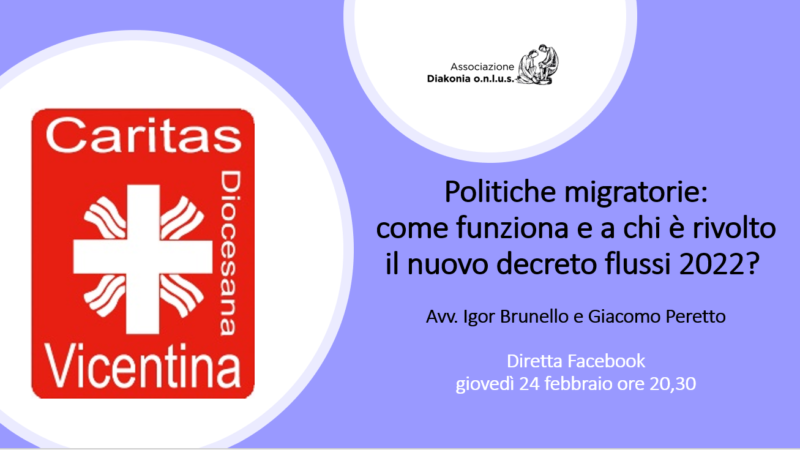 Ne parliamo in una diretta sulla pagina Facebook di Caritas Diocesana Vicentina, con l’Avv. Igor Brunello, esperto in diritto dell’immigrazione e Giacomo Peretto dell’équipe Migranti di Caritas Diocesana Vicentina.