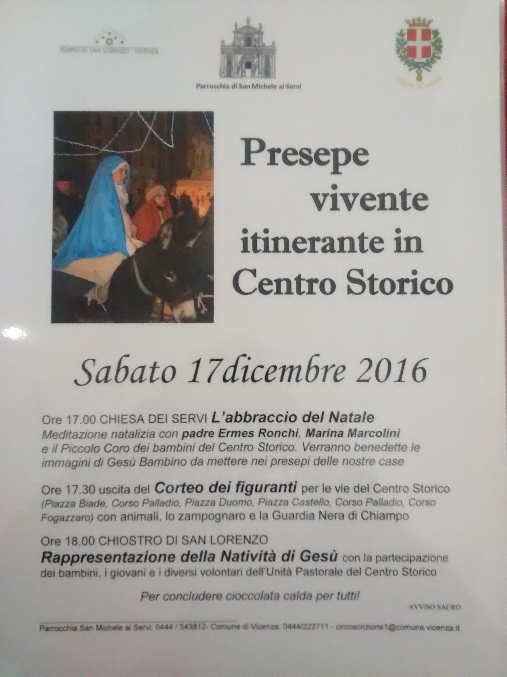 SABATO 17 DICEMBREcon inizio alle ore 17.00 nella Chiesa dei Servi, Vicenza