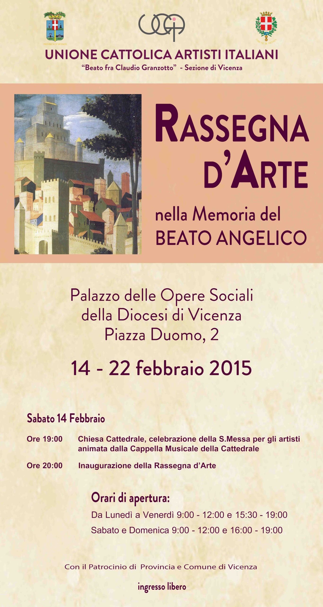 L’Unione Cattolica Artisti Italiani organizza una rassegna d’arta in onore di Beato Angelico dal 14 al 22 febbraio.