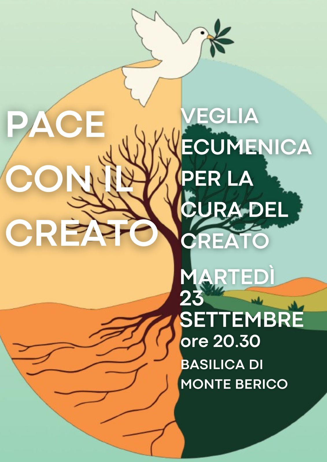 Appuntamenti diocesani, Dialogo Interreligioso, Pastorale, Pastorale del Lavoro 2 Settembre 2025 naikeborgo Veglia diocesana per il creato martedì 23 Settembre Descrizione: Alle 20,30 a monte Berico verrà celebrata la veglia diocesana per il creato Inizio: 23/09/2025 20:30 Fine: 23/09/2025 22:30 Categorie: Appuntamenti diocesani, Dialogo Interreligioso, Pastorale, Pastorale del Lavoro Allegati: Indirizzo: Città: Vicenza Regione: Veneto Paese: Italia Veglia salvaguardia del creato
