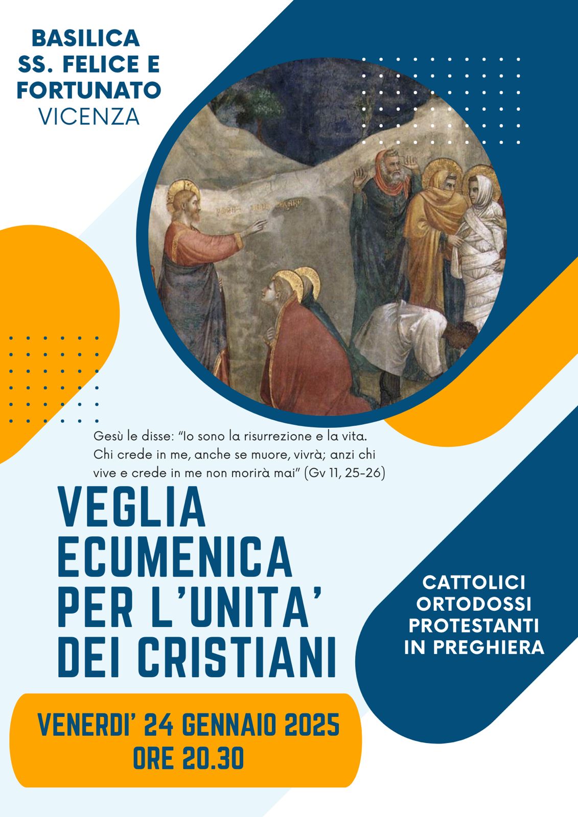 Sociale e Cultura 1 Agosto 2024 cberti VEGLIA ECUMENICA PER L’UNITA’ DEI CRISTIANI venerdì 24 Gennaio Descrizione: Veglia ecumenica per l’Unità dei Cristiani Venerdì 24 gennaio 2025 ore 20.30 Basilica SS. Felice e Fortunato a Vicenza Inizio: 24/01/2025 20:30 Fine: 24/01/2025 23:00 Categorie: Sociale e Cultura Allegati: Veglia ecumenica per l'unità dei cristiani Indirizzo: Città: Vicenza Regione: Veneto Paese: Italia
