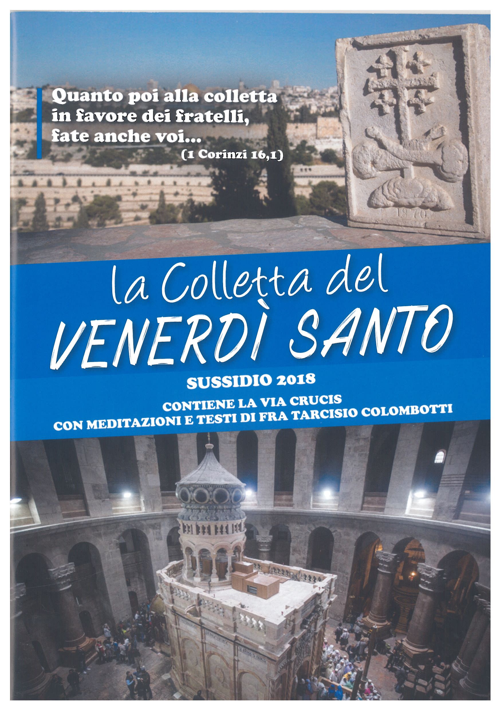 Il Sussidio 2018 della “Colletta del Venerdì Santo” (cfr immagine a lato), contiene la Via Crucis con meditazioni e testi di Fra Tarcisio Colombotti. Lo si può trovare in Ufficio Pellegrinaggi.